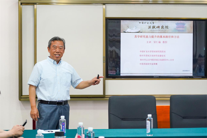 2025年6月12日上午,中国矿业大学苏轼研究院院长管仁福教授受邀参加 “苏轼研究能力提升座谈会”。本次座谈会由徐州市苏轼文化研究会举办,旨在深化徐州本土的苏轼文化研究,提升会员学术水平,推动地方文化建设与发展。会议由张仲谋教授主持,田传运副会长首先代表陈新生会长致辞,强调了研究会在深化苏轼研究、服务地方发展方面的责任与使命。随后,管仁福教授、薛以伟教授、张仲谋教授三位资深专家依次发言。